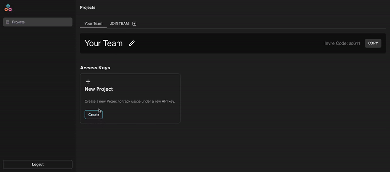 2. Once logged in, click Create on the New Project card, and choose a name for your project